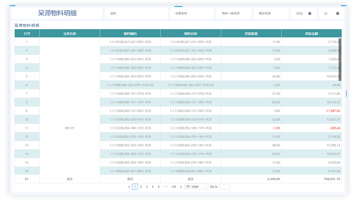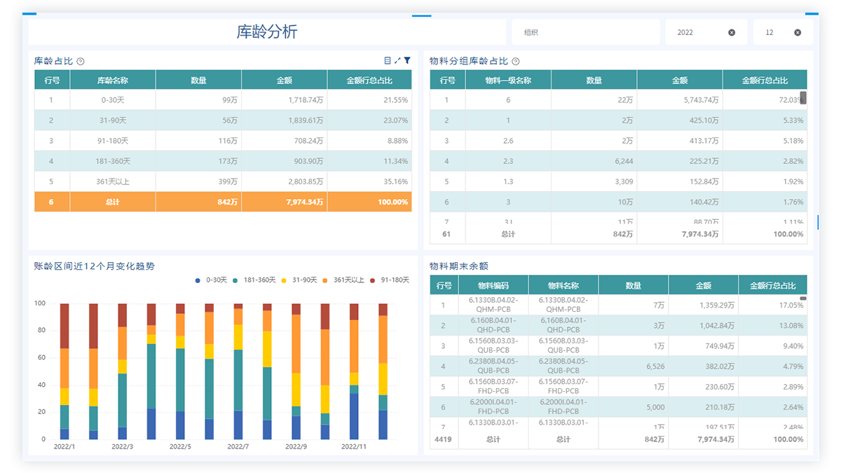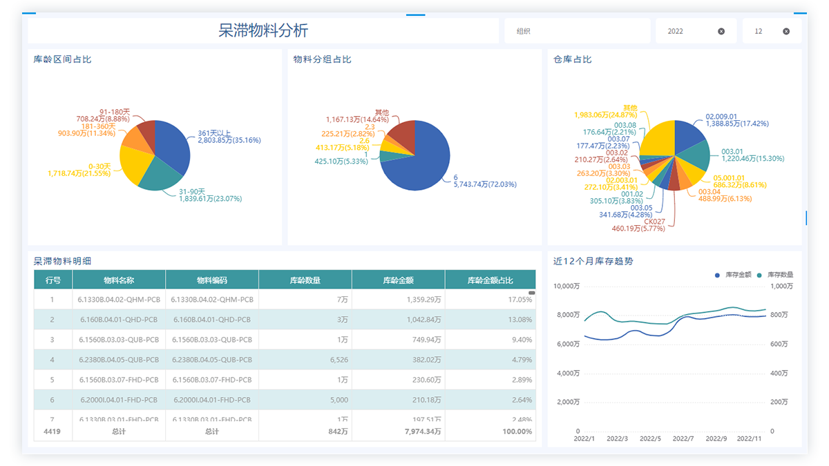 4、有哪些物料有着呆滞的风险?库龄分布情况是怎么样的?这些物料是何时入库的?为什么会发生入库?