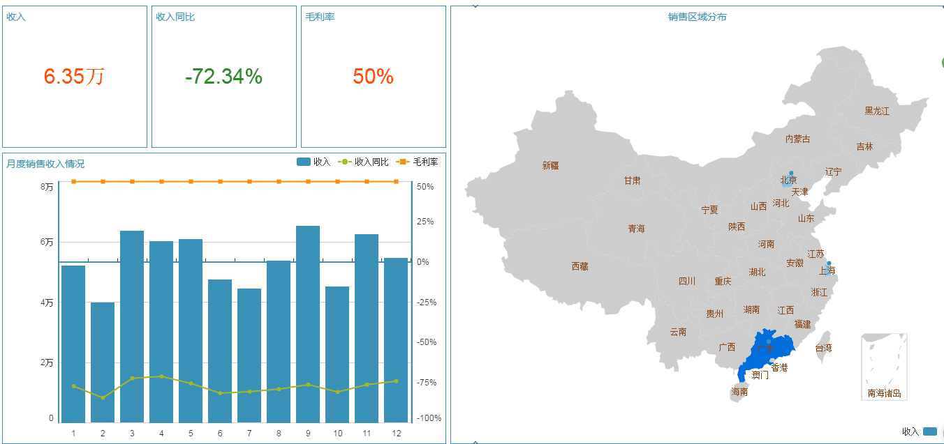 本次课程是基于oracle数据源的案例实操课,从年、月,门店,区域,商品等维度进行销售分析,结合销售金额、毛利等指标分析各月销售情况,全国各地销售情况;操作过程上以一个销售管理驾驶舱构建为主,将涉及同比、联动,钻取(地图下钻)等功能的应用。