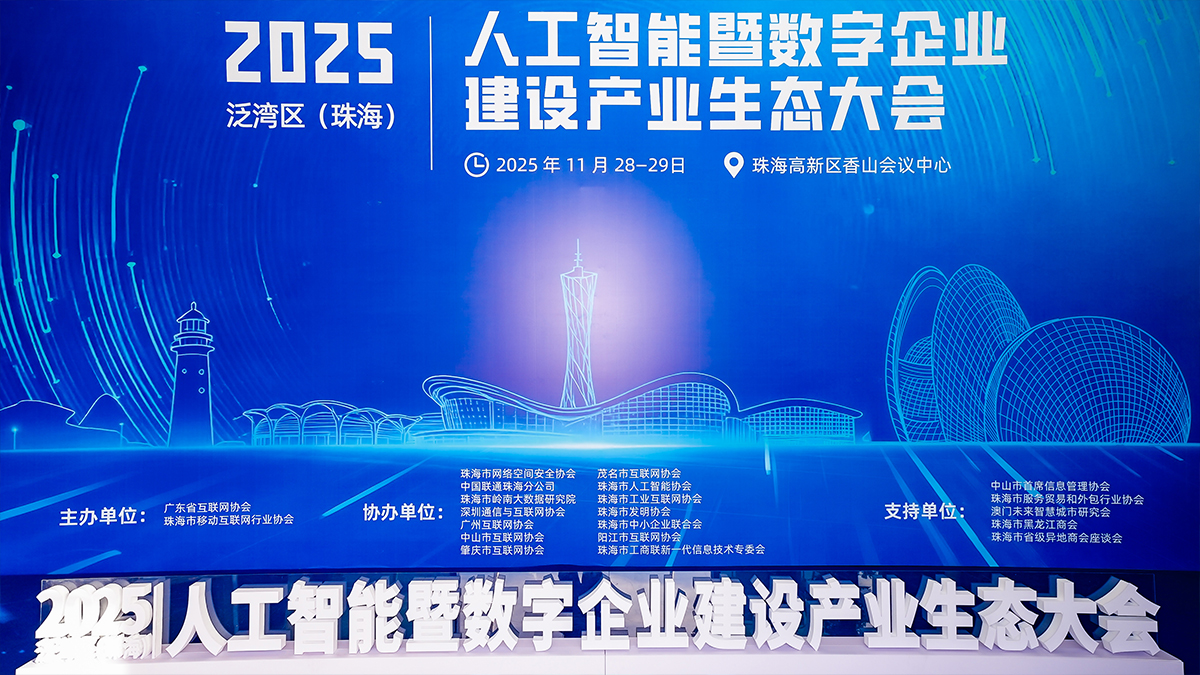 11月28日,以“数智赋能产业·创新驱动未来”为主题的 2025泛湾区(珠海)人工智能暨数字企业建设产业生态大会 在珠海隆重开幕。大会汇聚政产学研用各界力量,聚焦“人工智能+”场景落地,通过主题演讲、产品路演及案例研讨,旨在加速技术转化与产业融合,为大湾区高质量发展注入新动能。