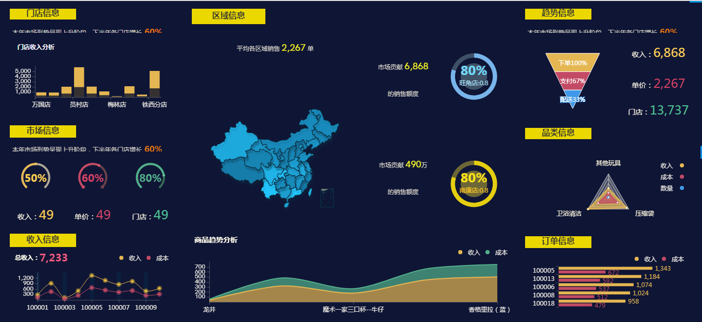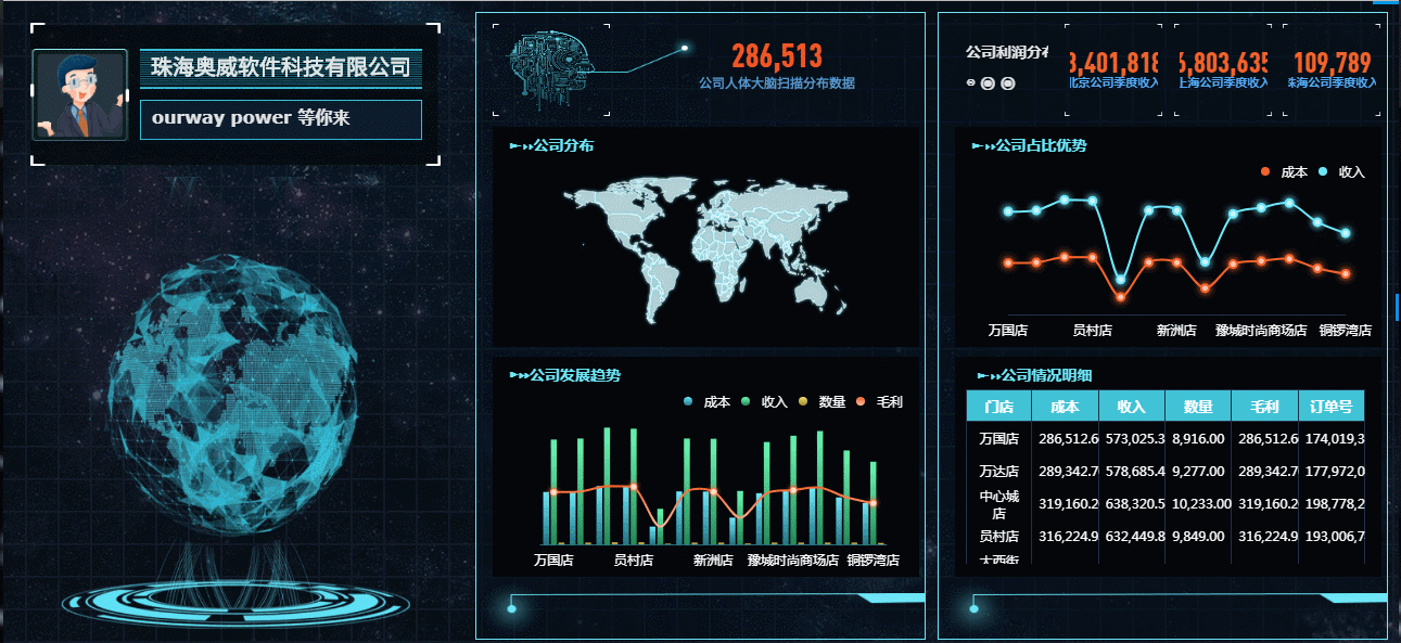 奥威BI报表模板无需添加数据,无需修改,3分钟快速制作美到无法呼吸的可视化报表,让数据一目了然,为您的工作带来高效率。