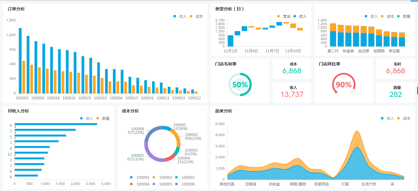 以白色底为主的报表,清晰简洁,可以快速区分数据。