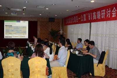 会议邀请了广东爱婴岛、泰峰电器、魅族、炬力集成、宝莱特、恒波通讯、伊泰莲娜、天年生物等二十家知名企业高层管理者。此次研讨会采用嘉宾演讲及高管面对面交流的全新模式,在会议中广东爱婴岛信息总监肖军先生,深入浅出地介绍了数据挖掘在零售企业中的重要价值。并在会议中指出:“BI是报表系统,这样的理解是错误的。数据挖掘是公司的终极目标。也许有一天,当你走进爱婴岛,导购员小姐会知道你想要什么,到时候不要过分惊奇,因为这就是BI的价值。”
