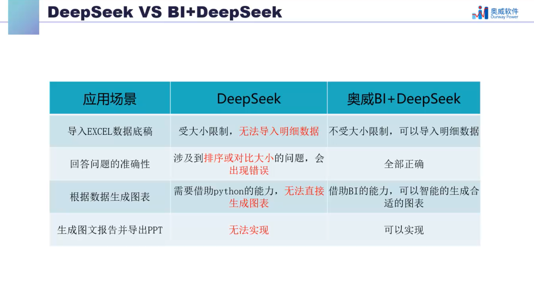 如果大家有兴趣对比测试,可以联系奥威BI官方客服,索取测试用到的EXCEL数据底稿及问题清单。