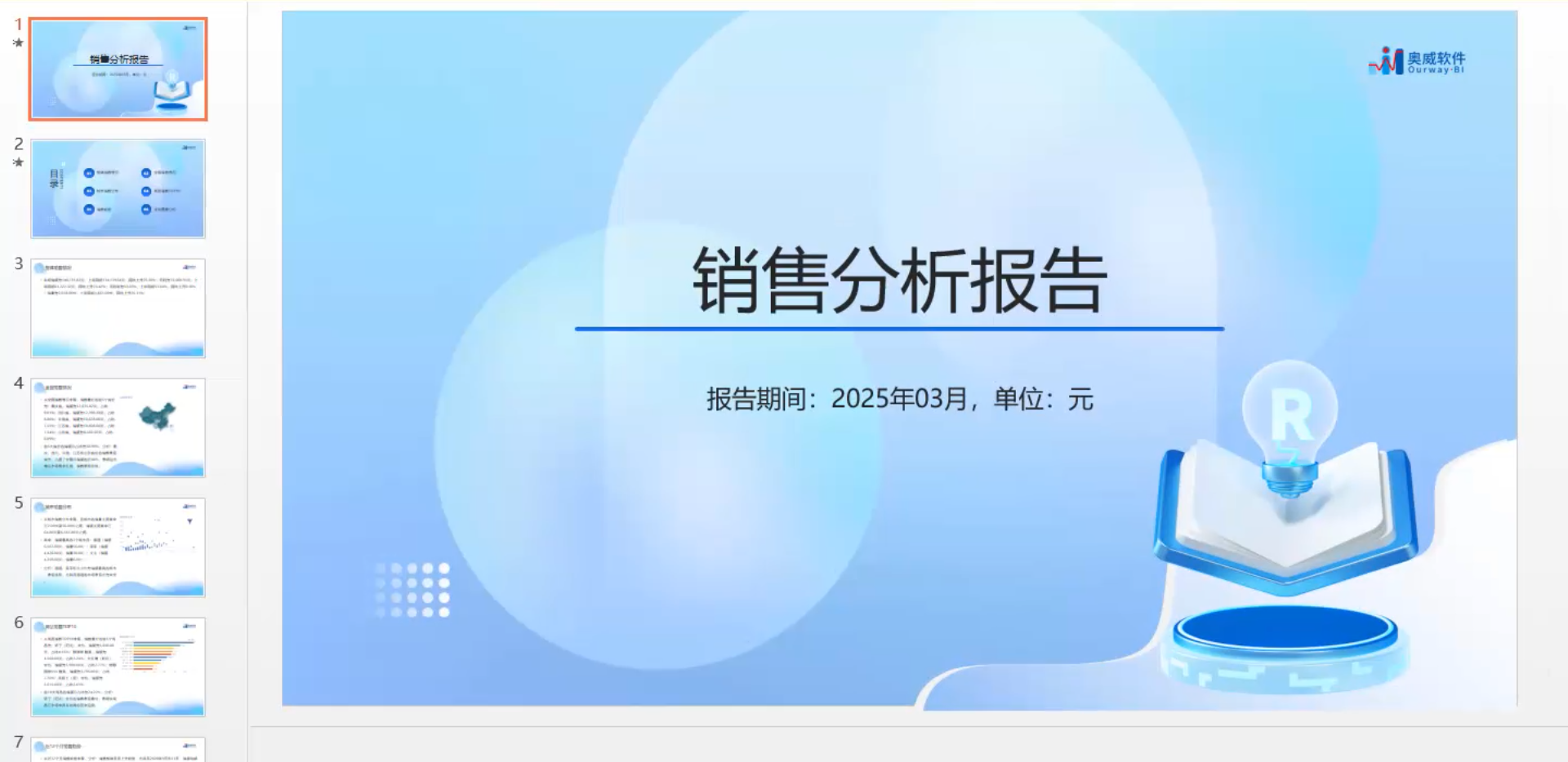 最后,我们再来演示一个只有BI才具备的能力了,就是生成一份图文报告,并导出PPT。