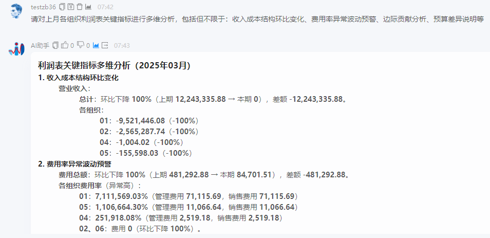 我们做了一个大胆的实验:清空BI所有预设报表,仅保留从ERP抽取的原始科目余额表和基础资料。现在,让我们见证AI如何仅凭"对话"就完成专业财务分析: