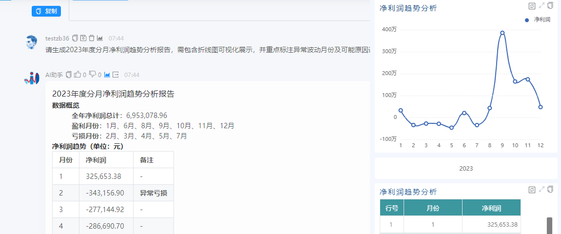 【趋势分析】请生成2023年度分月净利润趋势分析报告,需包含折线图可视化展示,并重点标注异常波动月份及可能原因说明