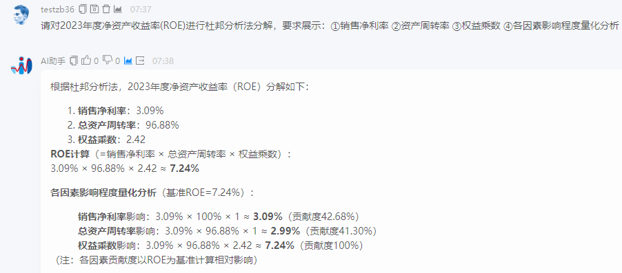 【绩效深度分析】请对2023年度净资产收益率(ROE)进行杜邦分析法分解,要求展示:①销售净利率 ②资产周转率 ③权益乘数 ④各因素影响程度量化分析
