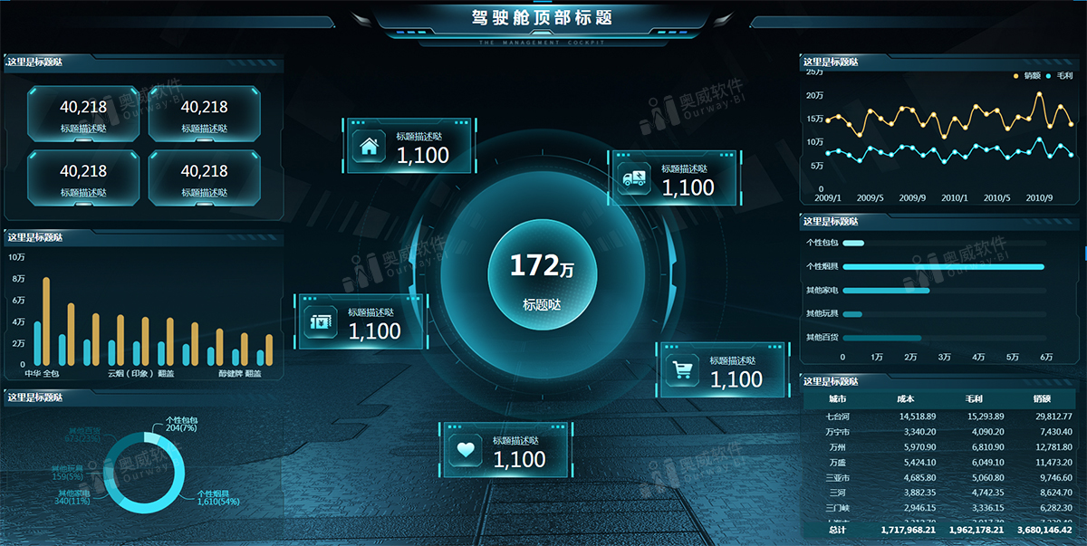 奥威BI+AI数据分析解决方案是一款针对多行业、多场景的全面数据分析工具,它结合了大数据、云计算和人工智能等先进技术,为企业提供高效、智能的数据分析服务。该方案不仅具备强大的数据处理能力,还提供了丰富的数据可视化图表和自定义分析功能,帮助企业快速洞察市场趋势,优化业务决策。