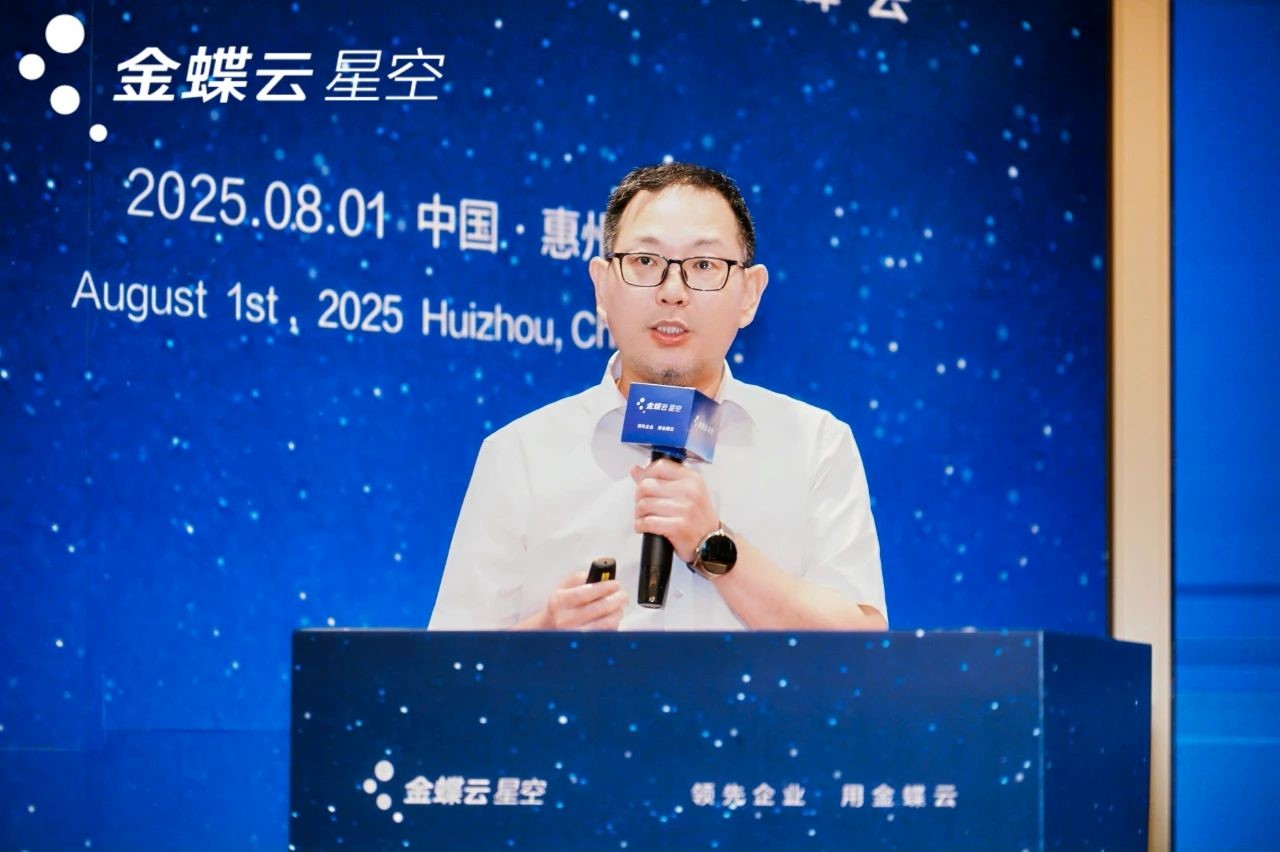 在精彩纷呈的主题分享环节,各行业专家贡献了诸多真知灼见。金蝶中国助理总裁、星空产品市场与解决方案部总经理李成冬提出,AI 时代下财务与供应链管理面临深刻变革,企业需构建 “强链接数字化平台”,借助 AI 技术实现从被动核算到主动决策的转变。广东微电新能源有限公司财务总监陈培周则分享了依托金蝶云星空实现数字化转型的成功经验,生动展现了数字化建设对企业发展的强大驱动作用。
