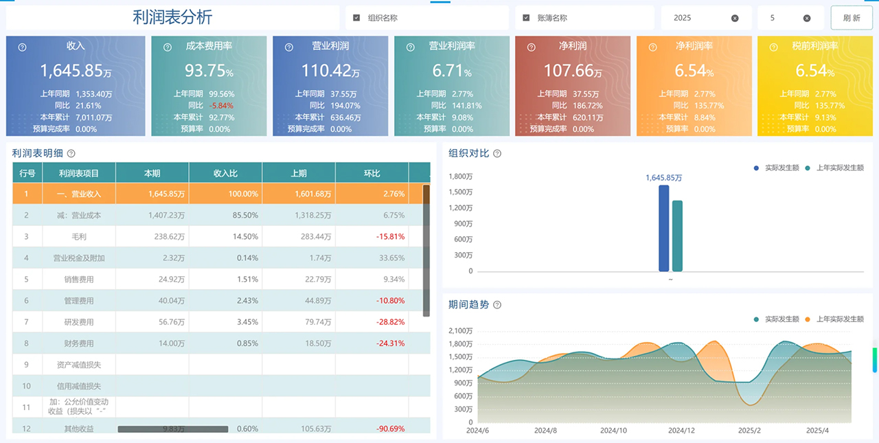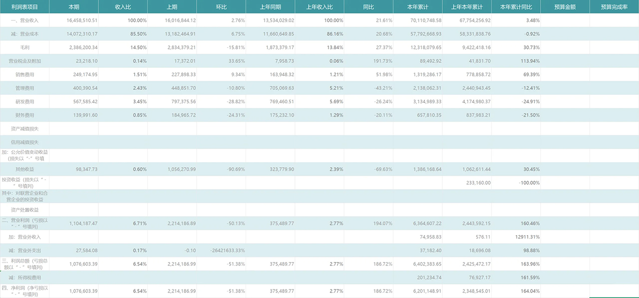 传统手工制作的利润表,虽包含当期数据、收入比、同比、环比、本年累计、本年累计同比及预算完成情况等丰富内容,但数据繁杂,难以从中发现问题,如同雾里看花。