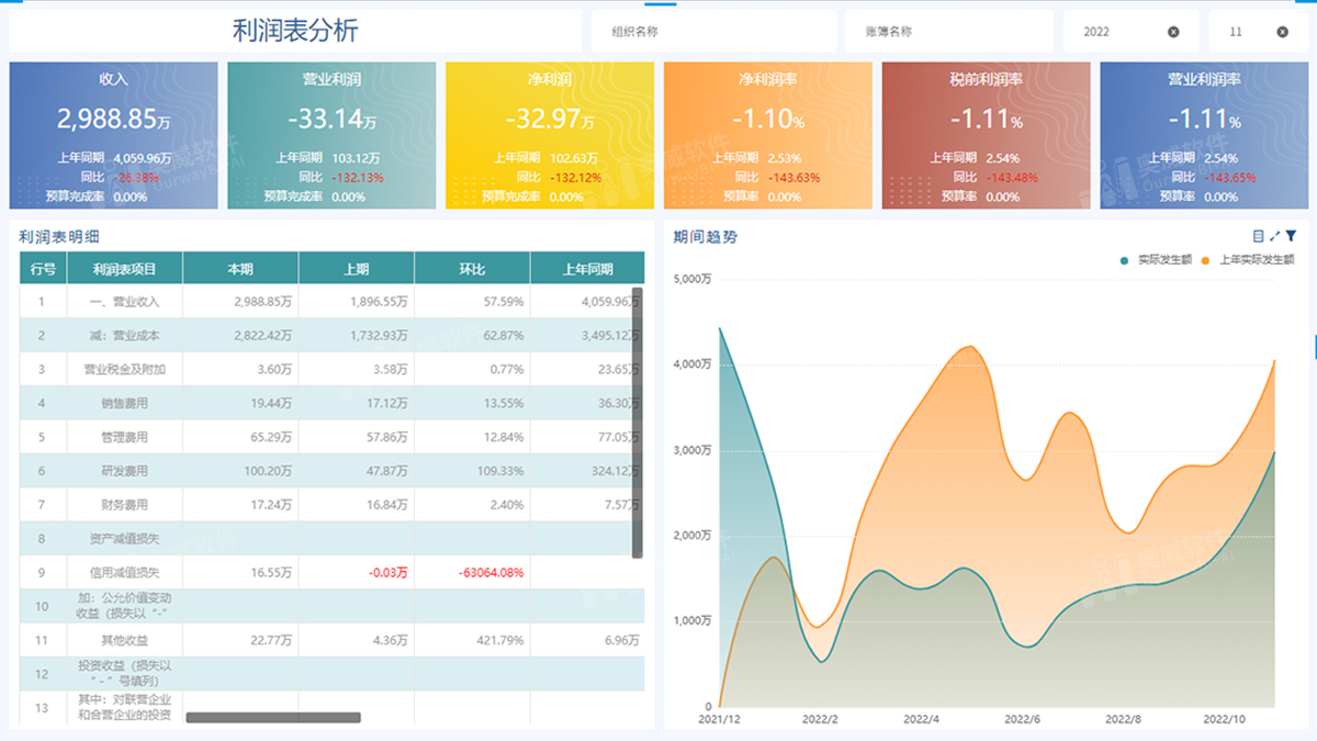 以财务分析为例,金蝶数据分析BI财务分析可视化报表是这样的: