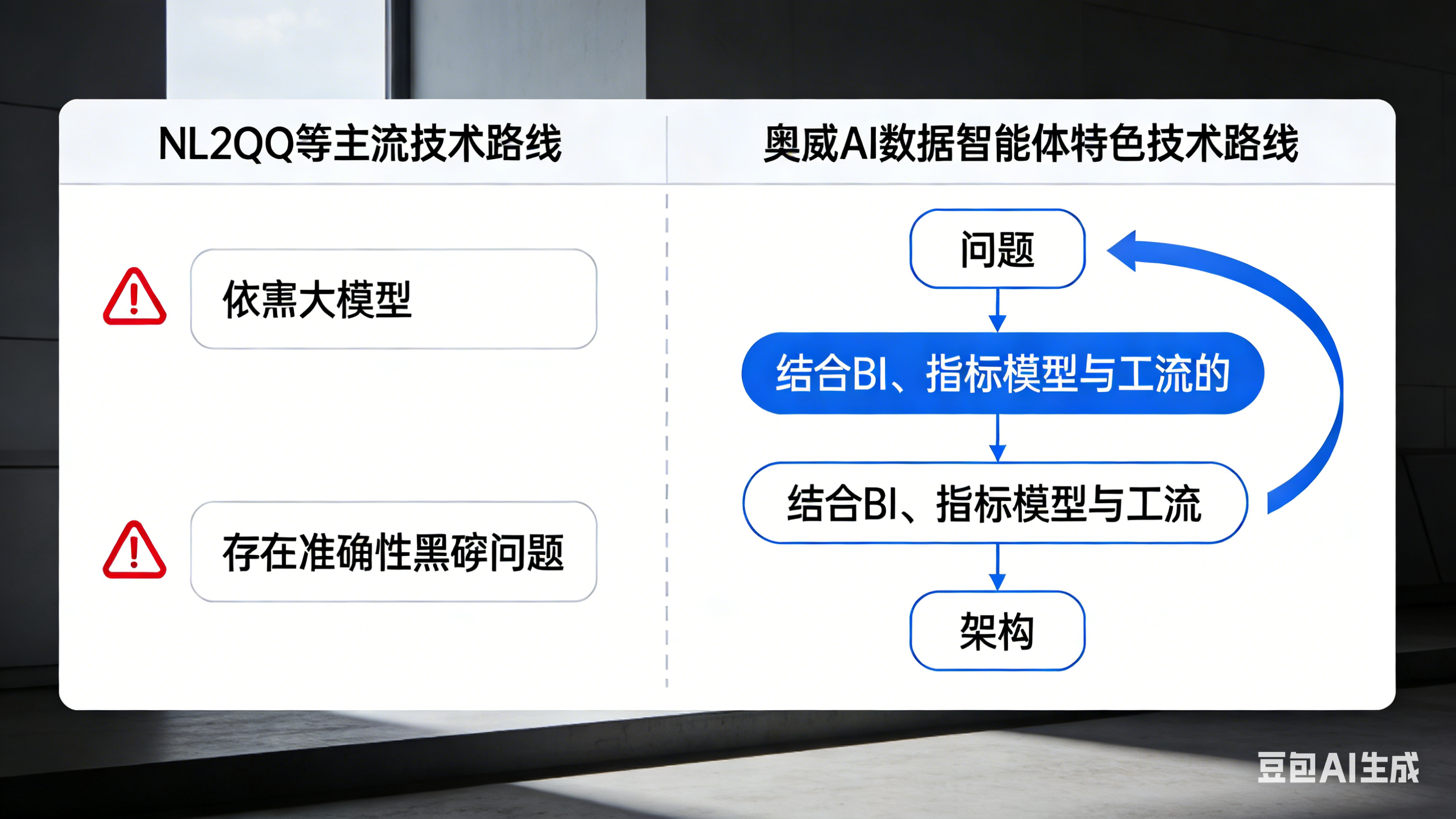 然而,在企业级应用的严苛战场上,这条看似捷径的技术路线很快暴露出其局限性。AI数据智能体的实践者们发现,生成SQL或Python代码的准确率难以突破90%大关。对于“销售金额”这样的关键指标,AI可能错误地从销售订单表而非出库表中取数。当面对集团合并报表、渠道复杂返利计算等极端业务场景时,代码生成的“黑箱”操作更让业务人员对结果的可信度与可解释性充满疑虑。
