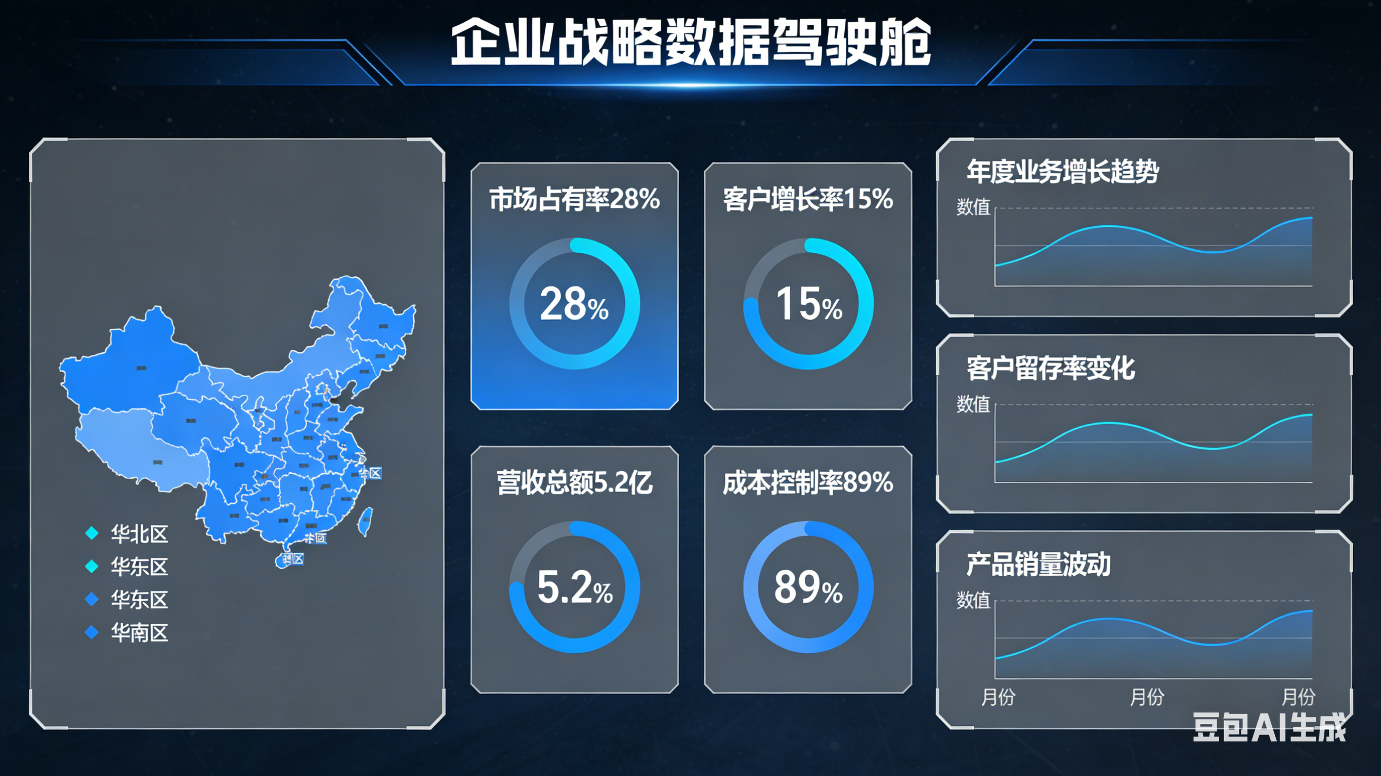 场景三:企业高管的战略驾驶舱。 对于企业老板和目标对象中的管理者,一个集成了财务、客户、运营、人力等关键指标的“总裁驾驶舱”至关重要。一张图看清企业健康度,通过下钻功能追溯任何异常数据的根源,支撑战略复盘与调整。