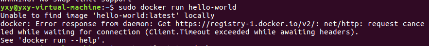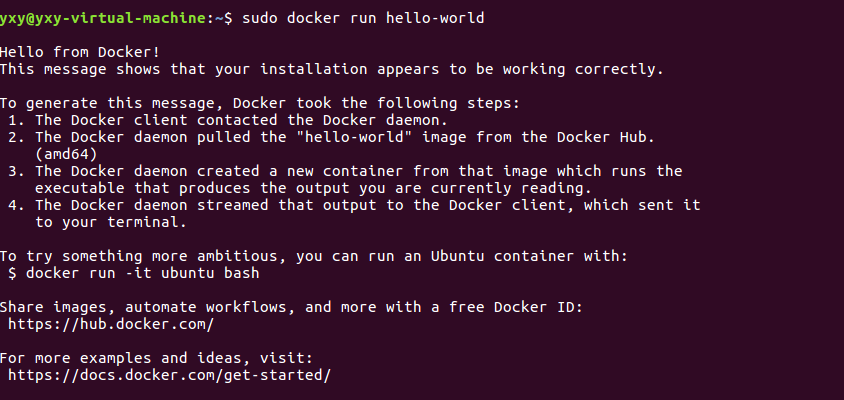 这个时候不要害怕,docker只是还没有下载这个镜像,所以我们重复命令,这时我们就会发现,Docker从Docker Hub上获取到最新的Hello World镜像,下载到了本地