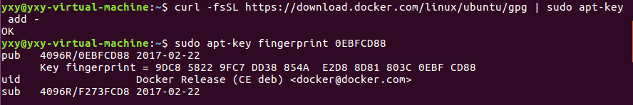 查看结果:sudo apt-key fingerprint 0EBFCD88