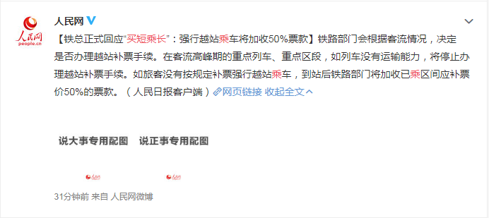 这个五一铁路买短乘长的话题一度刷上热搜,原因是五一期间因为旅客买短乘长导致列车满员,后续订票旅客无法上车。事后,铁路部门虽然对受影响旅客实行退票,但对旅客造成的时间耽搁、原定计划不得不随之更改等影响却无法消除,引起网络热议。