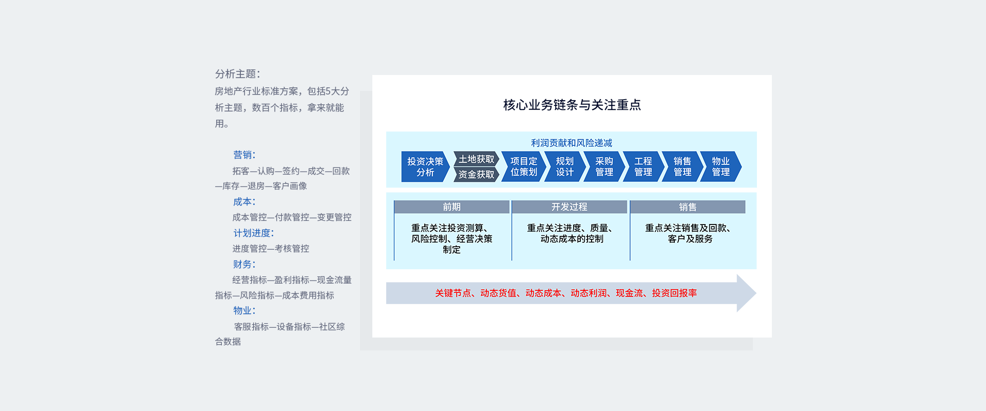 标准房地产BI方案+专业数据分析指导,让企业部署实施更健康,并传递成功经验,帮助房地产实现数据驱动。