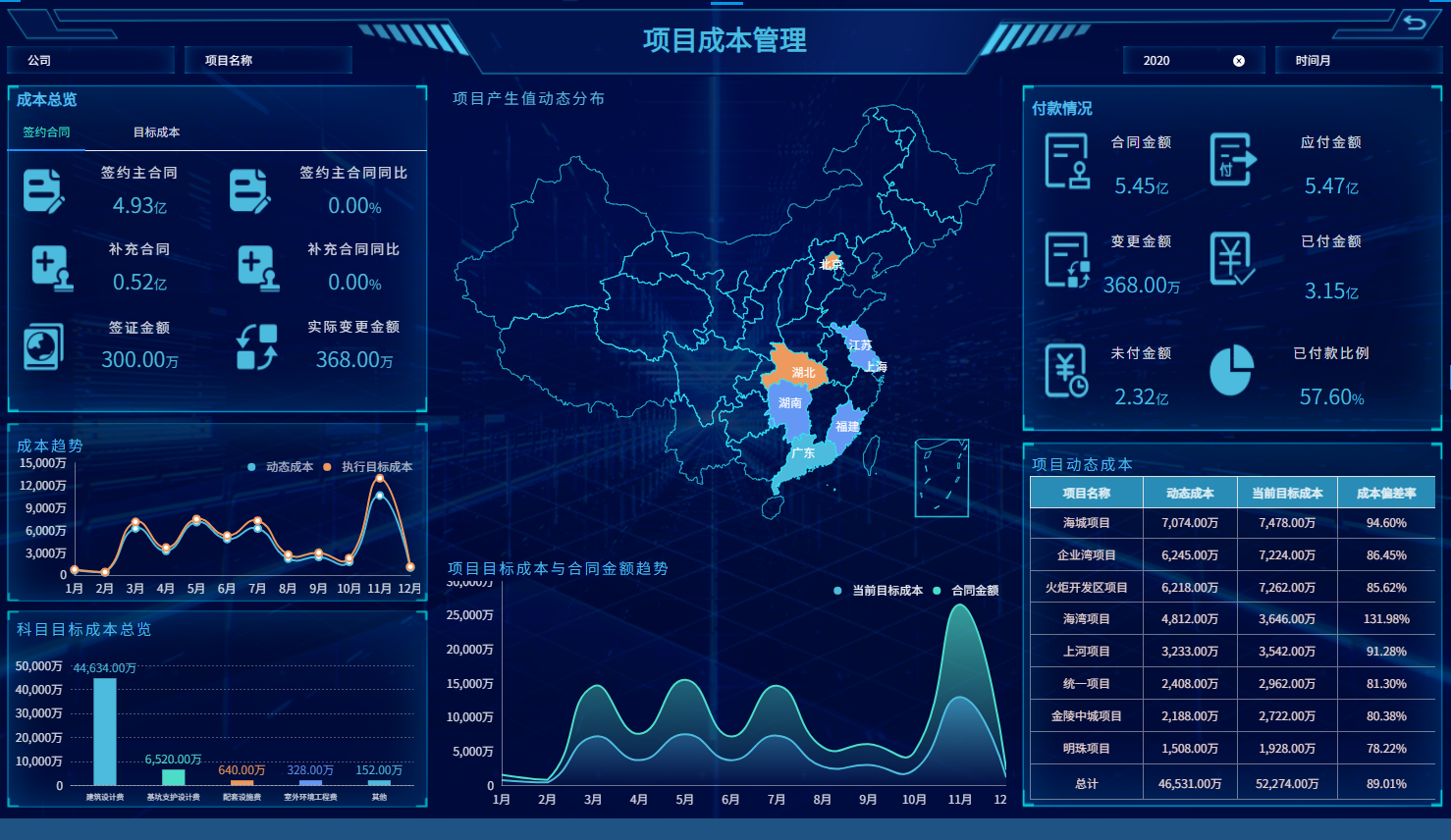 反映多个项目的完成情况对比以及所处阶段和节点。