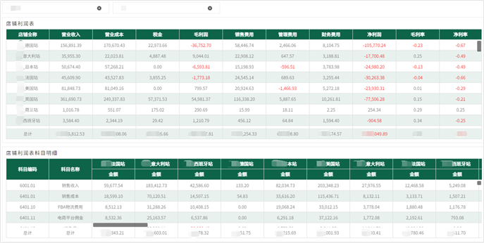 各店铺运营情况一目了然 ☑ 各店铺从财务角度的损益分析,包含共摊费用的分摊。
